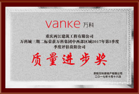 万科E区三期二标荣获万科集团中西部区域2017年3季度综合评估第一名
